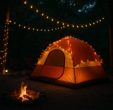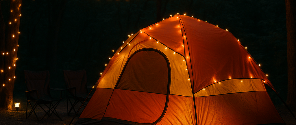 Bring a few strands of battery-powered or solar string lights on your next camping trip. Hang them around your tent or RV to keep your site visible (and festive) without the harsh glare of a lantern.